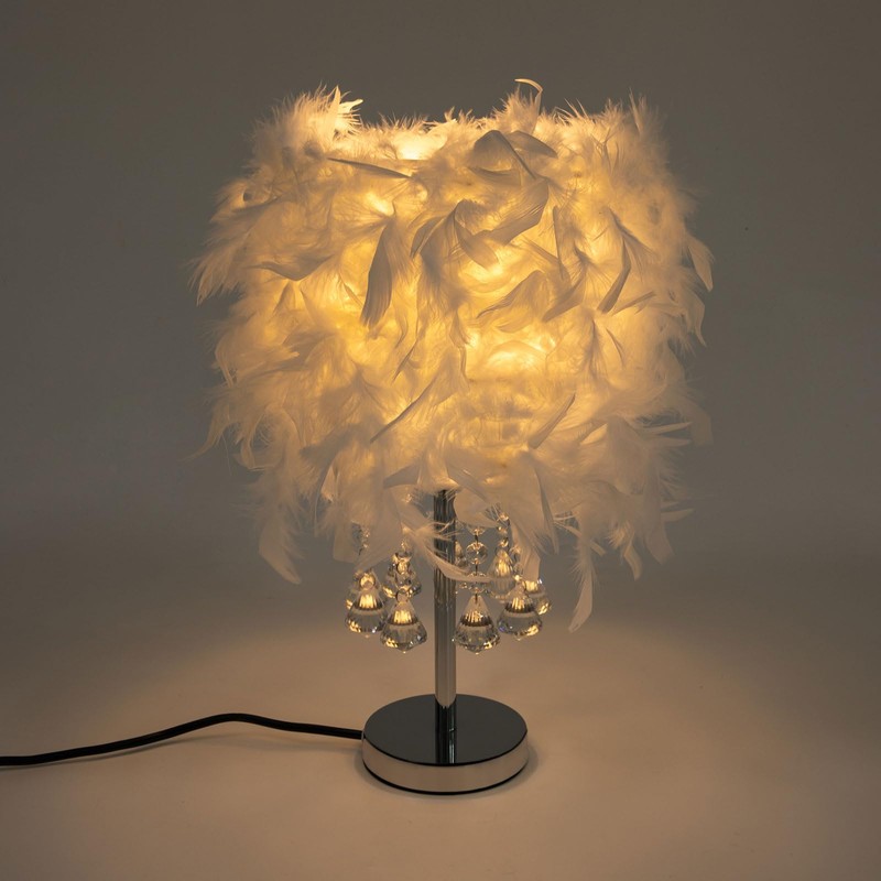 This feather table lamp is ideal for adding a touch of whimsy and sophistication to any space. Its crystal pendants and multi-layered feathers will add more warmth to your room.