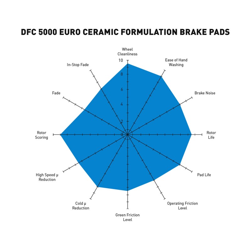 - Brake Pads: Includes (4) Dynamic Friction Company Front 5000 Euro Ceramic Brake Pads for improved braking performance
