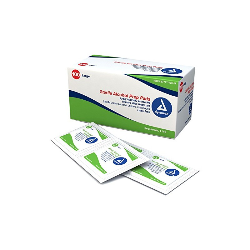 - Sterile alcohol prep pads saturated with 70% isopropyl alcohol.