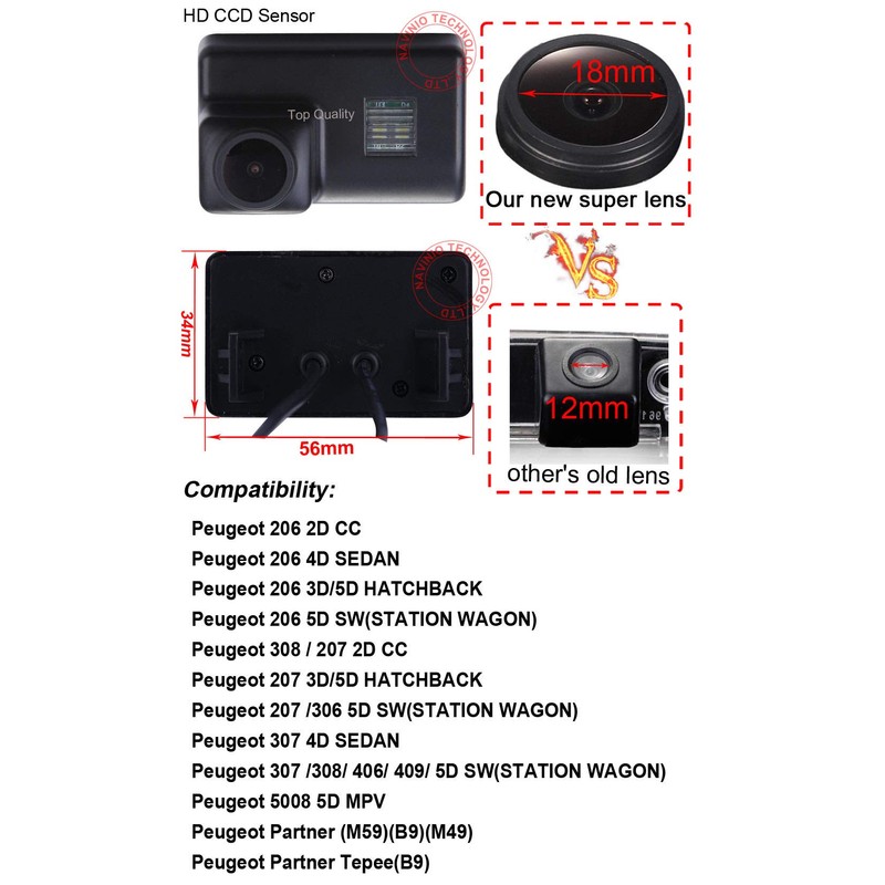 - ❤ Reverse Camera Compatible with Peugeot 206 207 306 308 307 406 407 5008 Partner Tepee backup