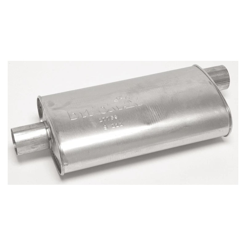 Brand: Dynomax Performance Manufacturer's Part Number: 17769 Part Type: Mufflers Product Line: Dynomax Super Turbo Mufflers Supplier Part Number: WLK-17769 UPC: 086387177696 Muffler Material: Steel Inlet Diameter (in.): 3.00 in. Outlet Diameter (in.): 3.00 in. Inlet Quantity: 1 Outlet Quantity: 1 Inlet Location: Offset Outlet Location: Center Case Shape: Oval Reversible: No Internal Construction: Turbo-style Muffler Finish: Aluminized Case Exterior Length (in.): 20.00 in. Overall Length (in.): 27.00 in. Thickness (in.): 5.500 Width (in.): 11.000 in. Outlet Style: Standard, without tip Remanufactured: No Quantity: Sold individually. | |