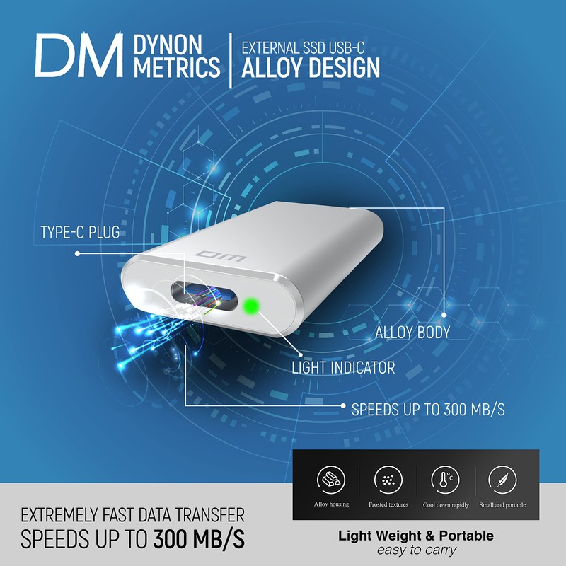 Dynon Metrics Alloy External High-Speed SSD - 1 TB USB-C Portable SSD with Standard USB-A and C Cable - 300MB/s