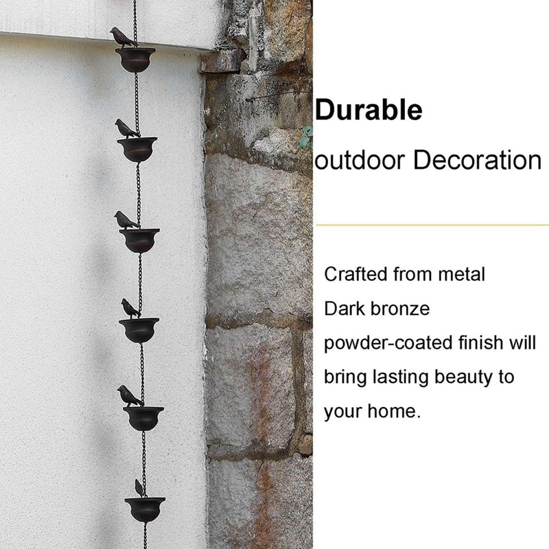 Dytabepl Rain Chains for Gutters, Rain Drain Chain, Mobile Birds on Cups, Rain Gutter 7.8 Feet, Metal Rainwater Chain with Attached Hanger and Birds