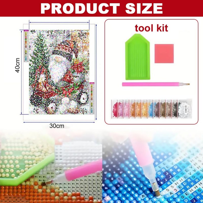 - Christmas diamond painting: contains 1 diamond painting, size 30 x 40 cm / 11.8 x 5.7 inches. Each work is individually packaged and comes with its own tool kit (pen, tray, wax). All the necessary tools are included to complete the diamond art!
