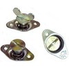 EJECTOR SCREWS 1/4-turn eject action, with nubs that release from the designated receptacle when unlocked. They will not snag when sliding or unlocked when curved panels are removed, and show a visual indication of a closure. The knob assembly is attached directly to the outside panel with 1/8" rivets or screws. Made of steel with bright silver zinc plating