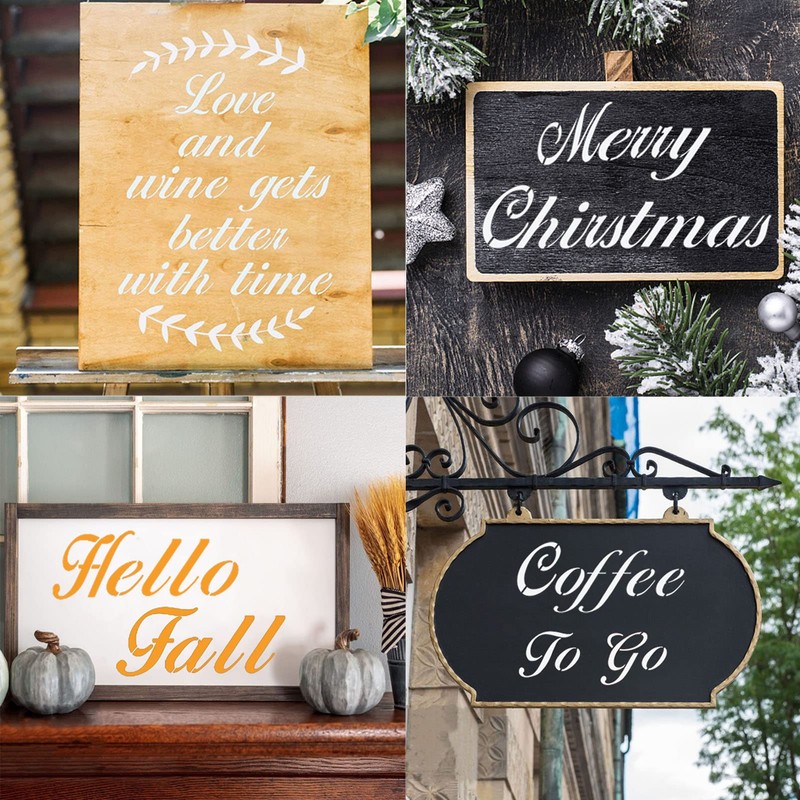 • 【Widely Use and Easy to Store】: All of the characters are aligned and grouped wisely for best results. They can be applied for wedding, banners, signage making, poster making, festivals, card DIY, home or party crafts, office decor, porch sign, like journal/fabric/cake decoration, airbrushing, making photo album cards, and more DIY art projects. These stencils can be stored in carton box or even in an organizer. Save your time, space, and make an upgrade!