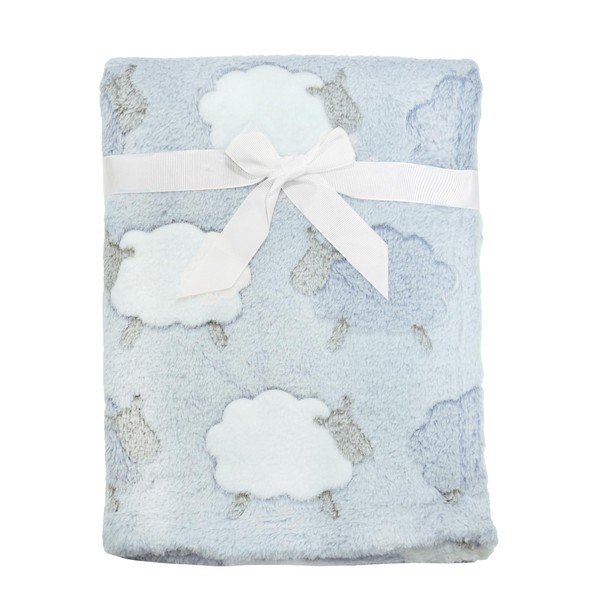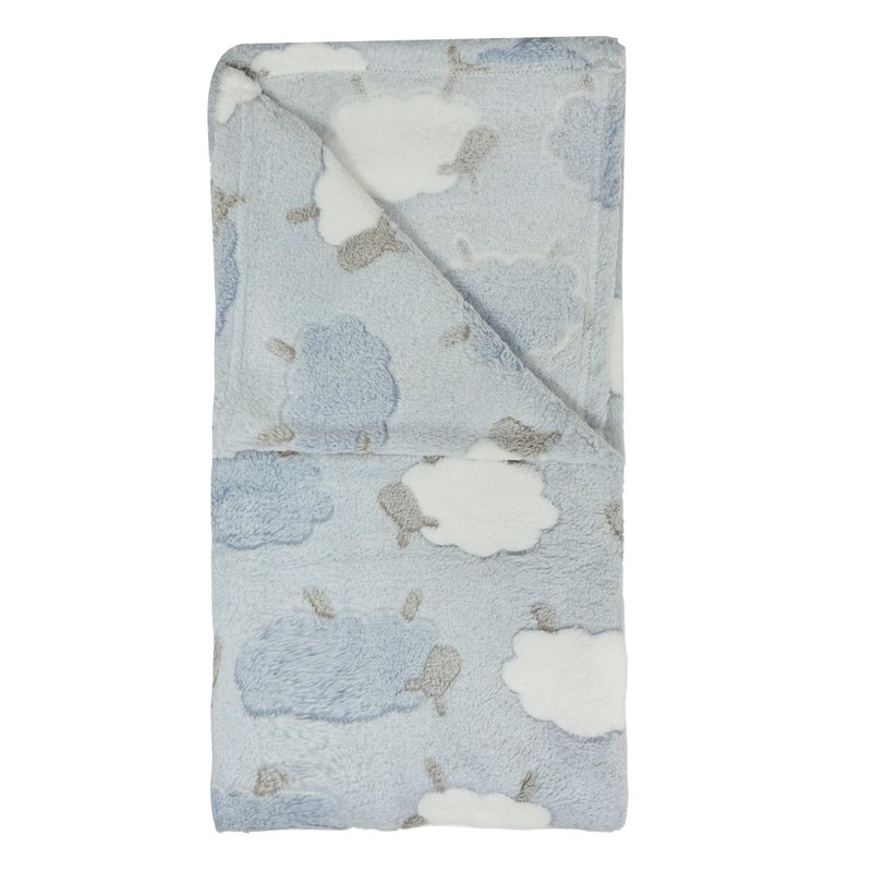 E&A Distribution Limited Baby Blanket for Newborn Soft Fleece Baby Blanket in Grey and Blue Sheep Design 75 x 100cm for Babies- Soft Plush Blankets Pushchair Cot Bed Blanket for Baby Boy & Girl