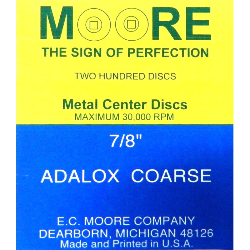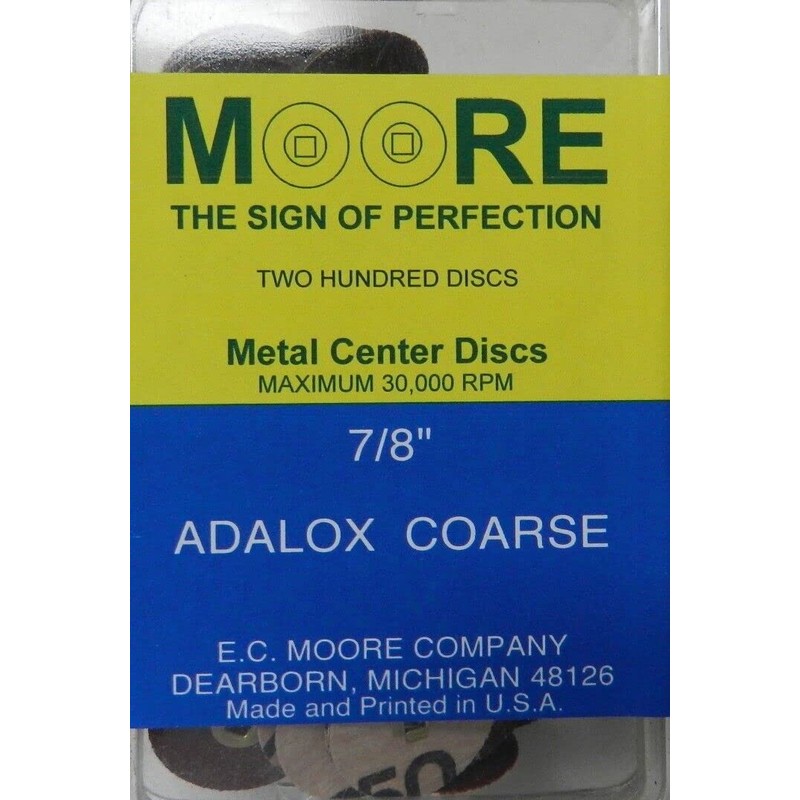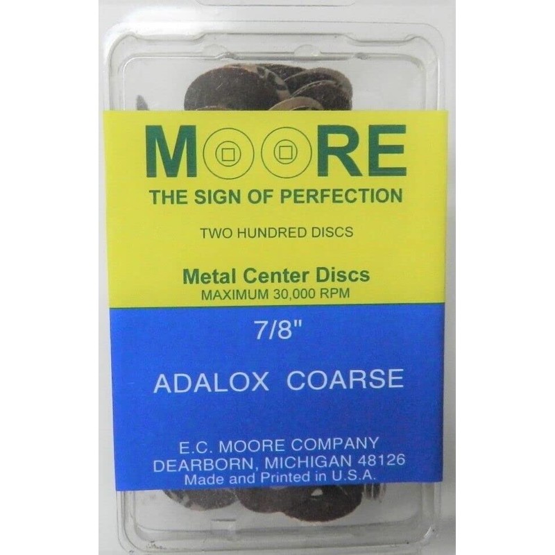 E.C. Moore's Adalox Coarse 7/8" Sanding Disc Snap on Brass Center Pack of 200
