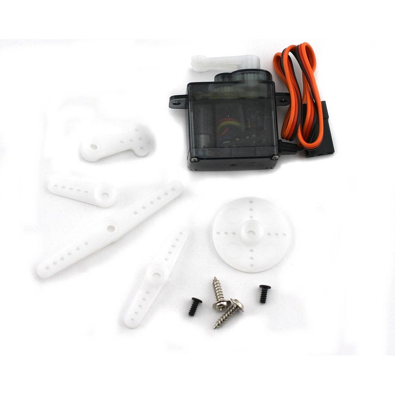 * Universal connector * Includes complete mounting hardware * Includes an extra-long 3D servo arm * 17.2 oz-in (1.17 kg-cm) of torque @ 4.8V * .12 sec/60 deg speed @ 4.8V * Weighs just .26 oz (7.5 g) with servo arm and servo lead