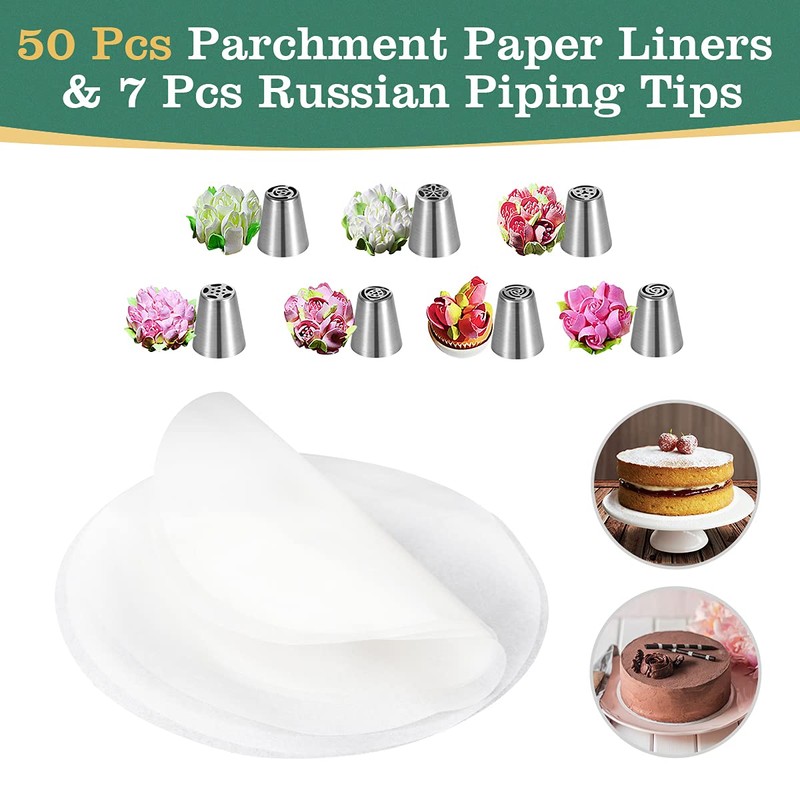- Juego de sartenes Springform - Incluye 4 pulgadas (tamaño: 4.3 x 4.3 x 1.7 pulgadas), 7 pulgadas (tamaño: 7.3 x 7.3 x 2.2''), 9 pulgadas (tamaño: 9 x 9 x 2.6''), y 50 forros de papel de pergamino y 6 puntas rusas para ribetes. Puedes hacer el pastel de queso, pastel de gasa, pastel de tres capas. ¡Siempre hay uno que te gusta!