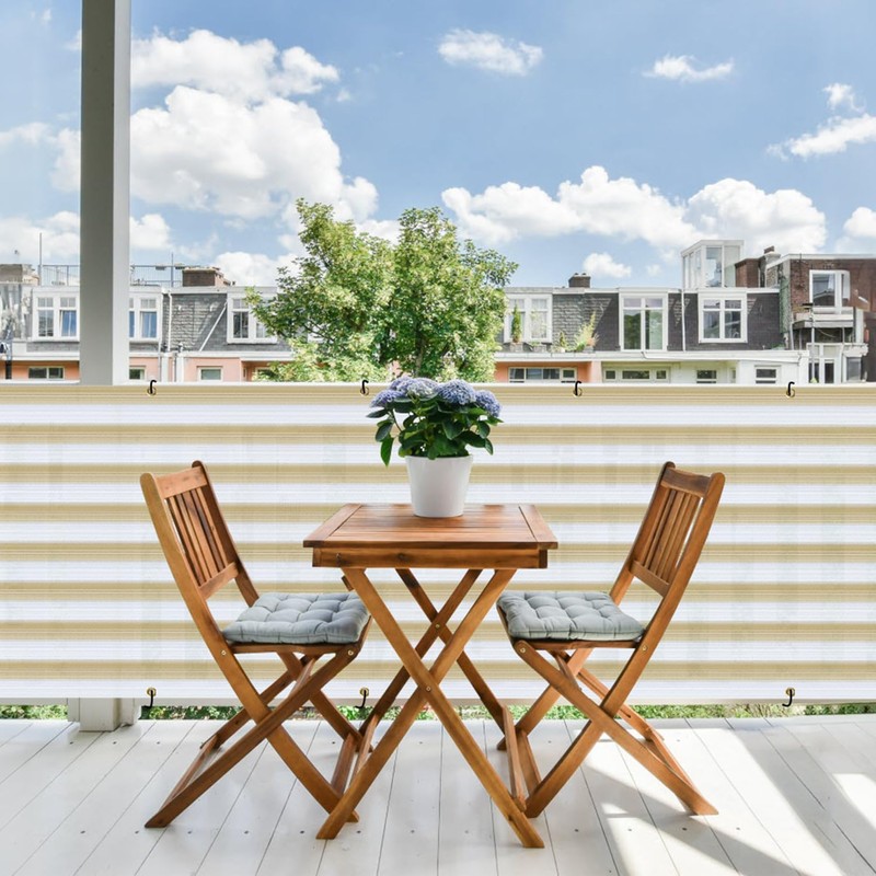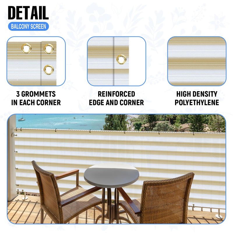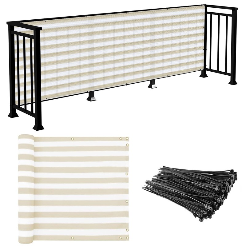 E&K Sunrise 3' x 25' Balcony Privacy Fence Screen Cover with Zip Ties Outdoor Screen Fence UV Protection for Deck Patio Backyard Apartment Pool Porch (Beige White Strip)