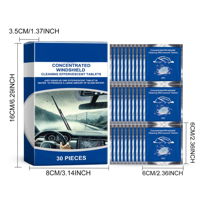Tableta efervescente limpiaparabrisas, resistente al agua y a la lluvia, para cristales de coche