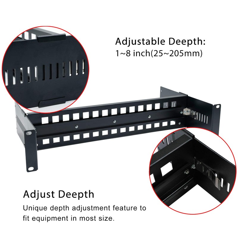 E-link 2U 19inch Adjustable Rack Mount Din Rail Chassis 35mm 19" Rackmount Din Rail Bracket, Easiest Way to Install Din Rail Mount Devices Like Industrial Media Converter in Cabine(Black)
