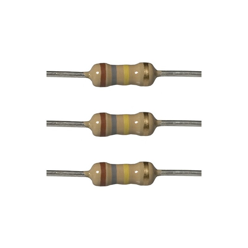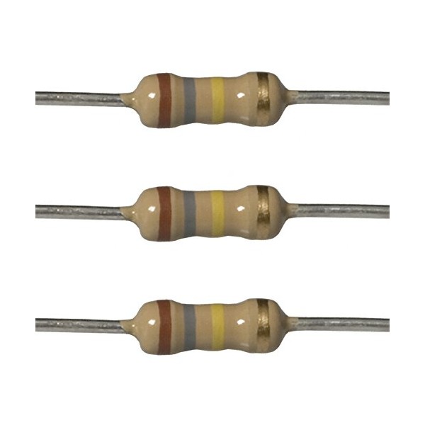 100 each 180k ohm resistors. 1/4 watt. 5% tolerance. Flame retardant coating. Lead free & RoHS Compliant. Cut tape packaging.