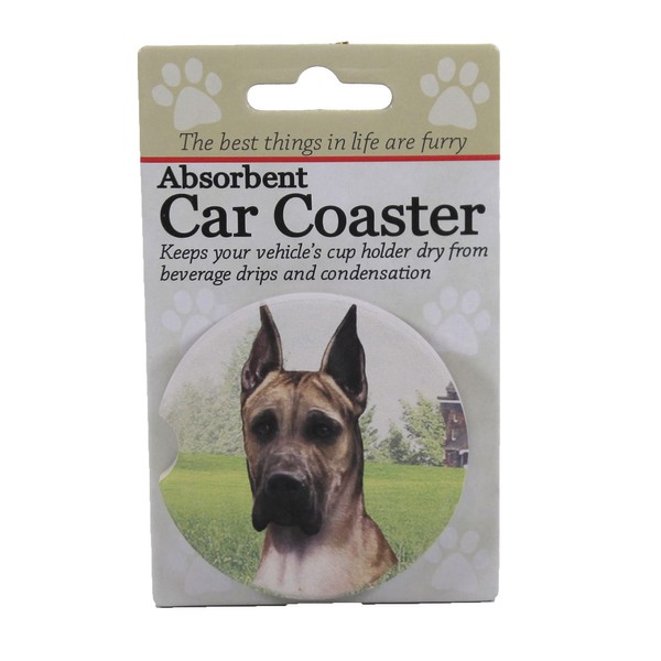 Great Dane Gift- Great Dane Car Coaster, made from super absorbent sandstone material to protect your vehicle from beverage spills and condensation with easy to take out notch!