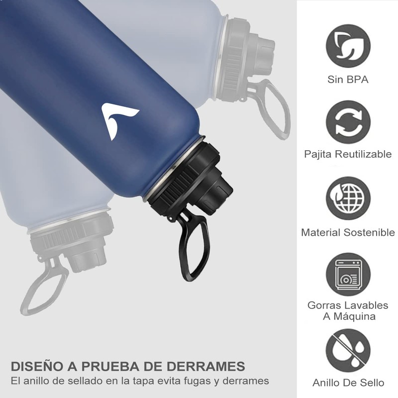 - 【Chug and Straw Tapas】Esta botella de agua viene con 2 tapas; una innovadora tapa Chug a prueba de fugas y una tapa de pajita recientemente mejorada que se ha mejorado para un mejor flujo. Ambos permiten beber fácilmente con una sola mano o con las manos libres.