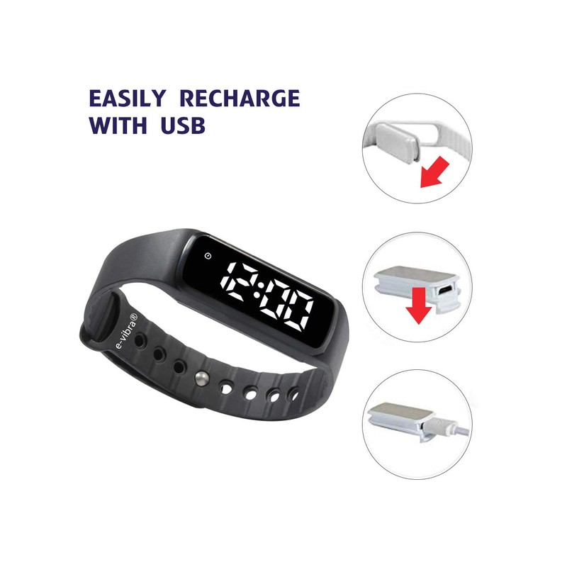 e-vibra 8 Alarm Vibrating Alarm Watch Medical Reminder Watch - with Timer and 8 Daily Alarms (Black - Largel)
