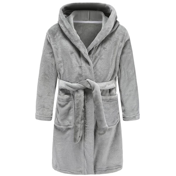 E.W Apparel Boys Robe Soft Fleece Bathrobe for Kids(Gray,11-12 Years)