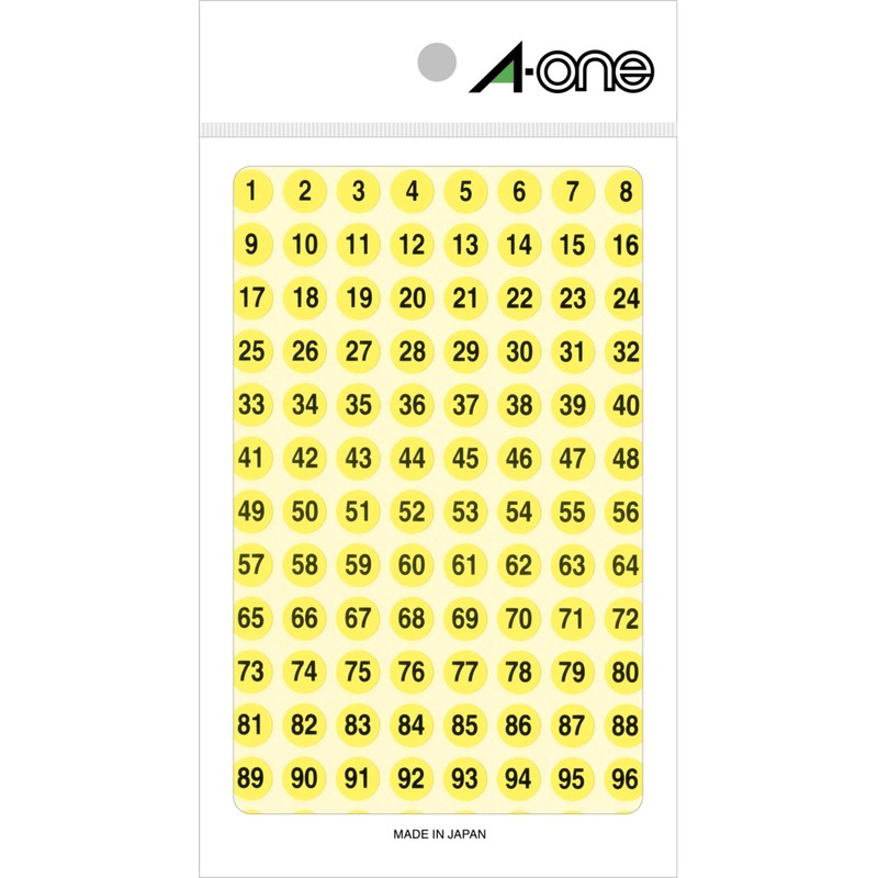 e-wan Special Label Numbers Fluorescent Yellow Round 9 mm 4 Sheet 08085