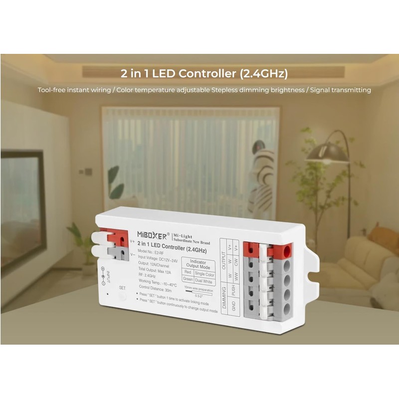 - Compatible with Mi-Light / MiBoxer 2.4GHz series remote