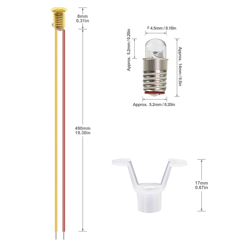 E505WT-10JP Diorama Lighting Fixtures Set of 10 White LED Screw Bulbs and Stand Bases E5 E5.5 12V-14V Train Model Railway Model Building Model Lighting Diorama