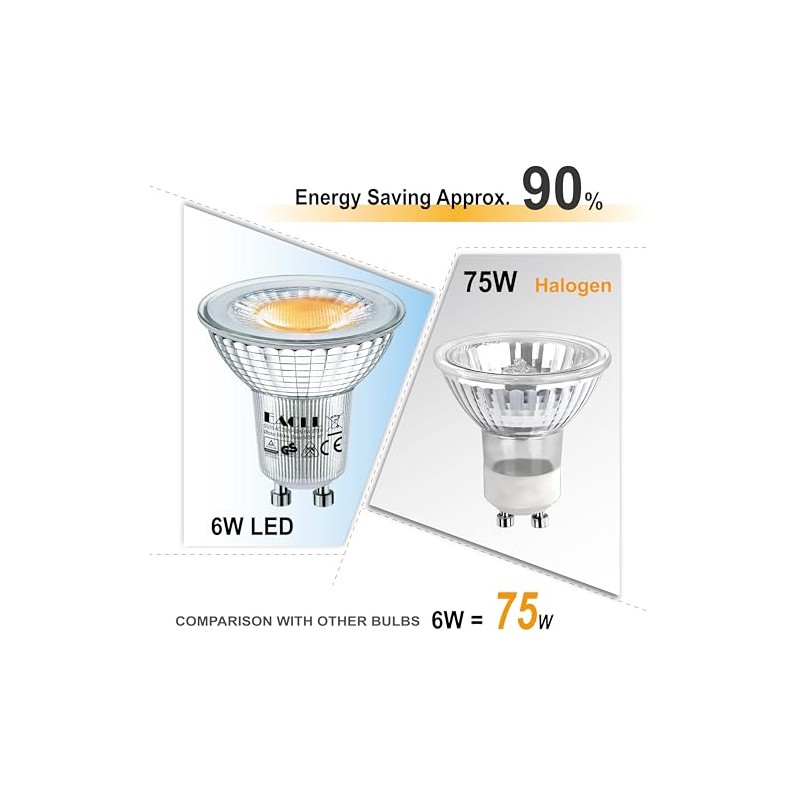- 3. Energieeffizient: diese GU10 6W LED Leuchtmittel Entsprechung 75W Halogenlampe, Sparung bis zu 90% an Stromkosten, H?he Lichtleistung, geringe Hitze, geeignet fr Innenbeleuchtung Vorrichtungen