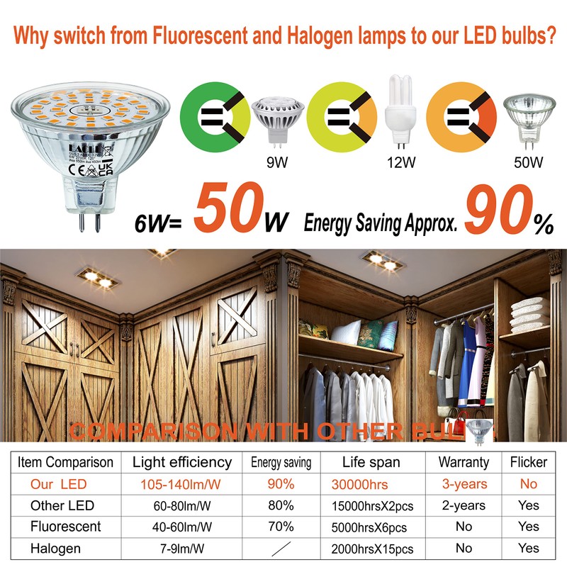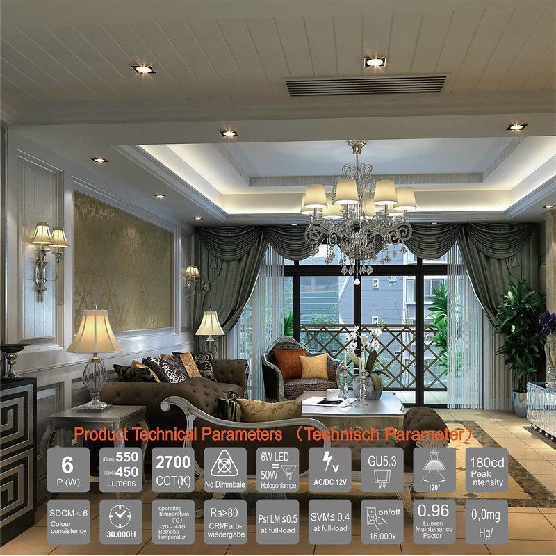 - Easy to install standard light source, they are not dimmable, no need for additional dimmers and the adjustment of electricians, you can easily insert the GU5.3 base, create a cosy and natural atmosphere for your whole house