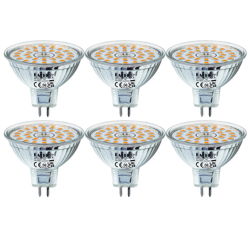EACLL GU5.3 LED Warm White 6 W Replaces 50 W Halogen MR16 Bulb, Pack of 4, 550 Lumen 2700 K Bulb, AC/DC 12 V Flicker-Free Spotlight, Beam Angle 120 Degree Spot, Non-Dimmable Reflector Lamps