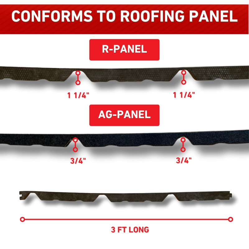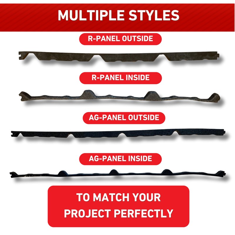 - [Multiple Options] - Two different panel styles to choose from: AG-Panel (3/4 IN Rib) and R-Panel (1 1/4 IN Rib). - Inside and Outside closures available. - All strips are 3 FT long. - Multiple quantity packs: 4, 12, 20, or 100 strips.