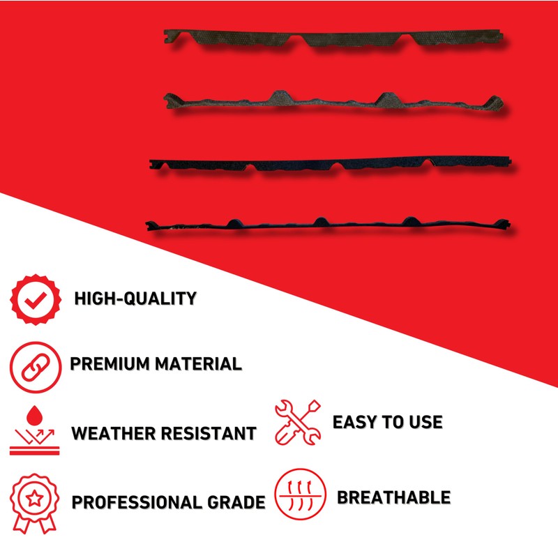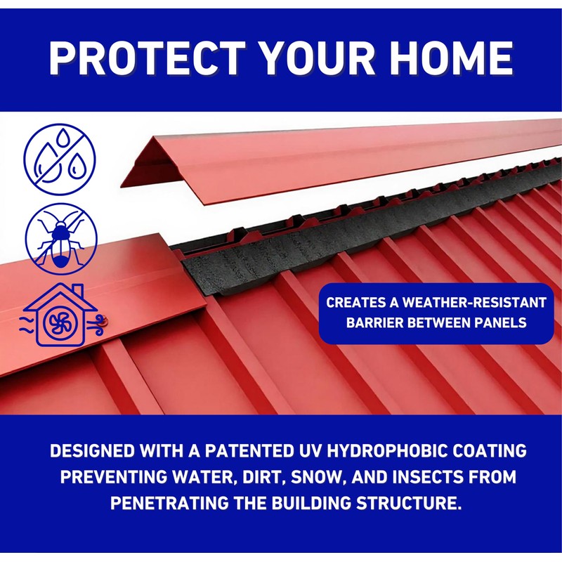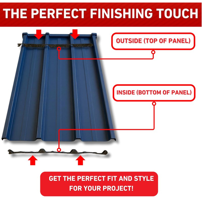 - [Easy to Use] - Can be installed by anyone, regardless of experience. - Contour cut for exact panel matching. - Each strip features adhesive on one side for secure installation. - Flexible material forms to roofing panels easily.