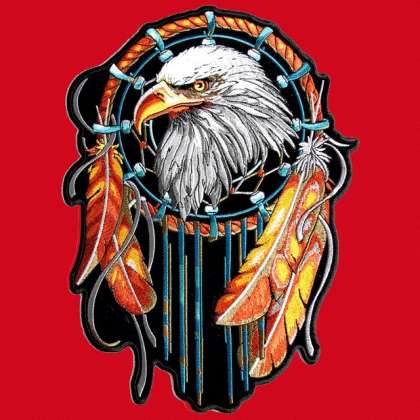 EAGLE DREAM CATCHER IRON ON EMBROIDERED 5.5 INCH BIKER PATCH