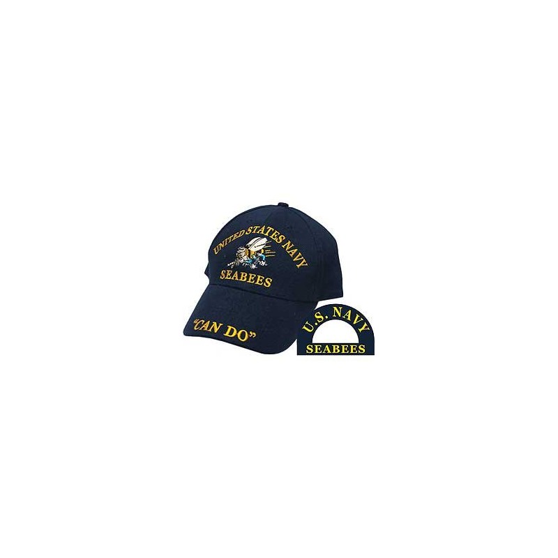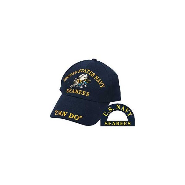 You will be proud to wear this embroidered US Navy SEABEES cap dedicated to every member who served in the U.S. Naval Construction Forces. The word Seabee comes from initials CB which in turn comes from the term Construction Battalions. Can Do is also embroidered on the edge of the brim. Show your pride for those who keep our armed forces up and running. A perfect gift for that special Soldier or Veteran in your life. Not sold in stores!