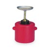 Eagle Plunger Cans ideal for cleaning with flammable or volatile fluids, featuring a brass flame arrestor dasher screens and pump assemblies and comply with OSHA standards, polyethylene, red, 2 quarts.