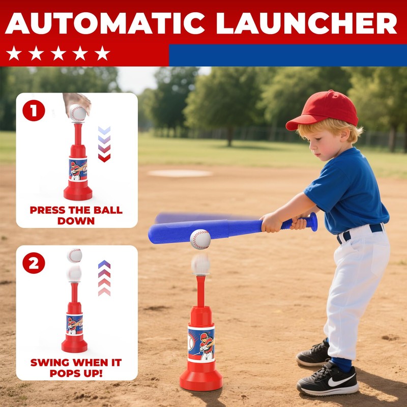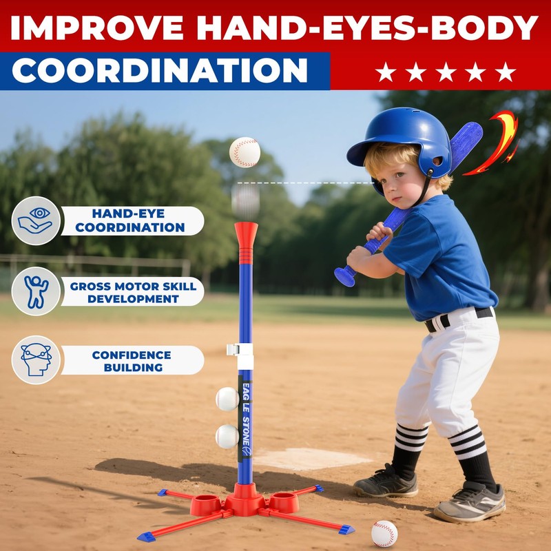 - Ultra-Stable Base + Stakes: 48% thicker tube with wider anti-slip X-shaped base paired with 2 ground stakes keeps the tee set steady, even during energetic swings. Works on grass, driveways, or indoor floors—no more chasing a toppled t ball set. T-ball toys for ages 3 4 5 6 year old boys.
