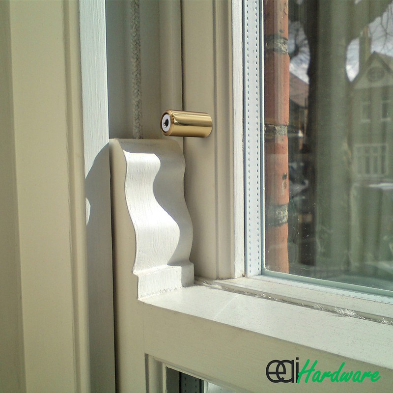 EAI Sash Window Stop for Security and Ventilation | Polished Brass | Pack of 2 Stops & 2 Keys