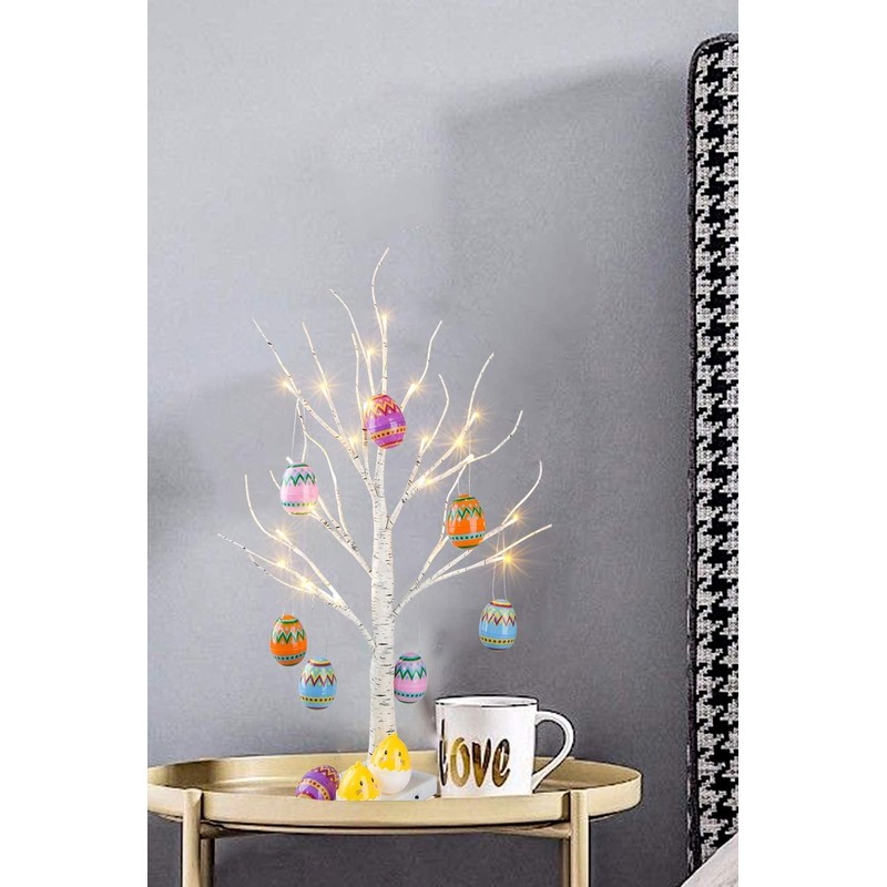 - Table tree decoration: total 60 cm high with 24 warm white LEDs wrapped with white birch texture ribbon and give you a festive feeling when lighting, timer function (6 hours on/18 hours off).