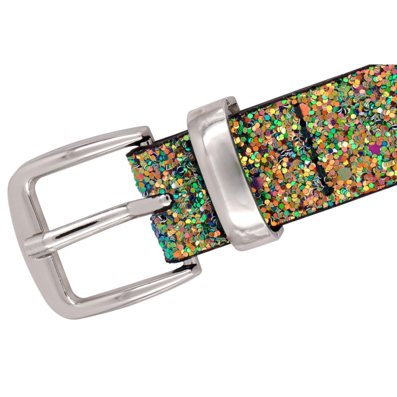 Eanago Glitter Children's Belt 'Ice Crystal' for Girls (Nursery and Primary School Children, 5-9 Years, Hip Circumference 57-72 cm), Belt Size 65 cm - Silver/multi-coloured., size: 65