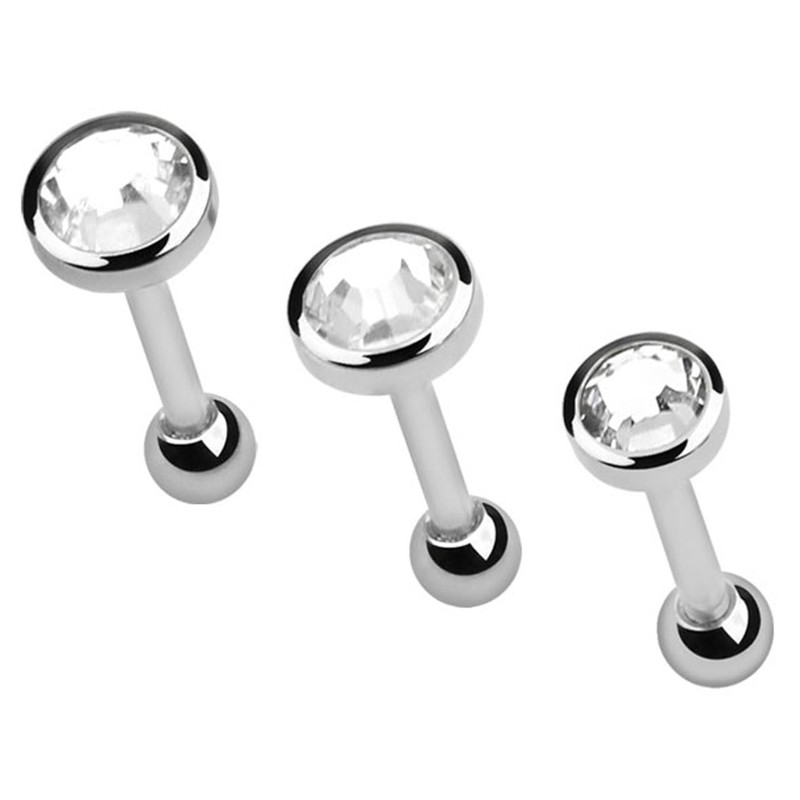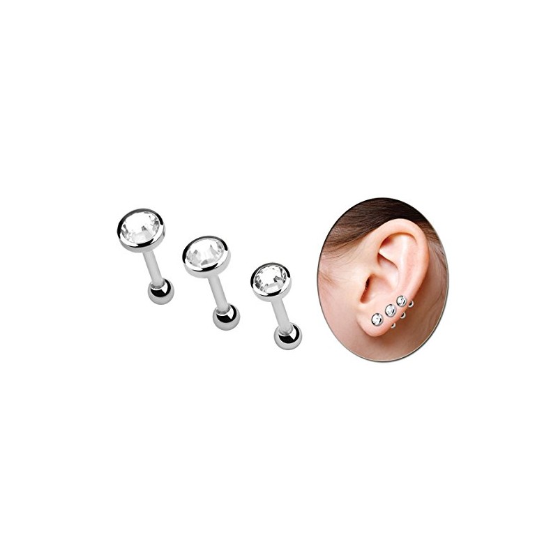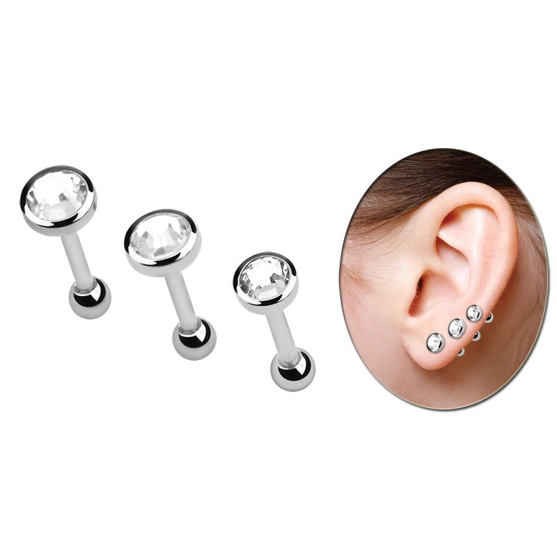 Ear Piercing Jewellery Helix Tragus Bar with Ball and Stone Plate Set in 3/4/5 mm Choice of Colours, Stainless Steel, Crystal