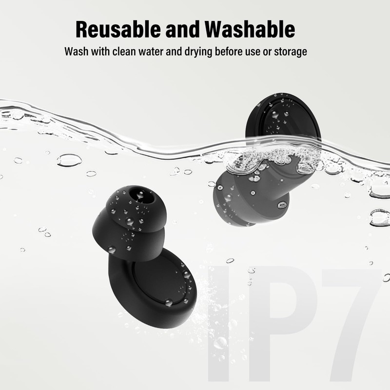 Ear Plugs for Sleeping Noise Cancelling - 35dB Reusable Ear Plugs with 7 Eartips and Carry Case - Flexible Hearing Protection - Replaceable Single/Double Eartips for Sleep, Focus, Travel, Work, Black