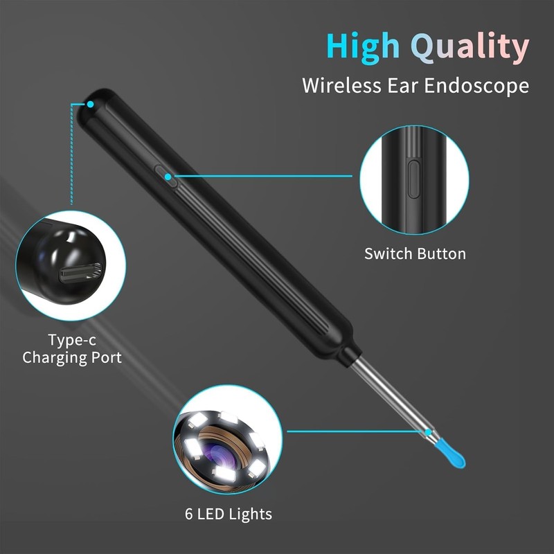 【High-Definition 1080P Ear Camera】: This earwax removal kit comes with a 1080P HD camera and 6 LED lights to effectively help you see and clean earwax. The ear cleaner camera's temperature is close to human body temperature for comfortable use. This ear wax removal kit is suitable for adults, children, pets, and can also be used to check teeth, nose, throat, scalp root, and other body parts.