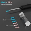 【Comprehensive Package】: The travel essentials earwax removal kit includes :Light Earwax Removal Kit*1, Silicone Earplug Cover*5, Earplug Cover Storage Bottle*1, Traditional Ear Scoop Kit*8, Charging Cable*1, and Instruction Manual*1. It's everything you need for easy and effective earwax removal on the go.