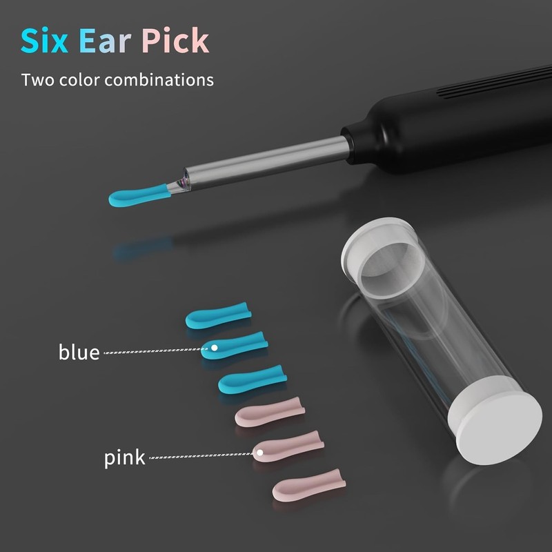 【Rotatable and Adjustable Ear Scoops】: The ear cleaner is equipped with rotatable metal ear scoops that can be tightened to prevent falling off. This ear wax removal tool camera also has a silicone ear scoop cover to prevent scratching the ear canal. You can choose the curvature of the ear scoop that suits you. Make sure to tightly fit the silicone ear scoop on the ear scoop before use.