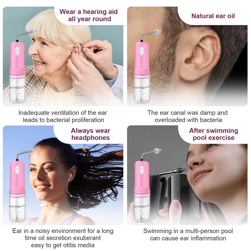 • Effective Wax Removal:The ear cleaning kit has four cleaning modes (soft, middle, par, high) that can be switched with one click. Use warm water and select the desired mode to start earwax removal. It keeps you and your family's ears clean and healthy
