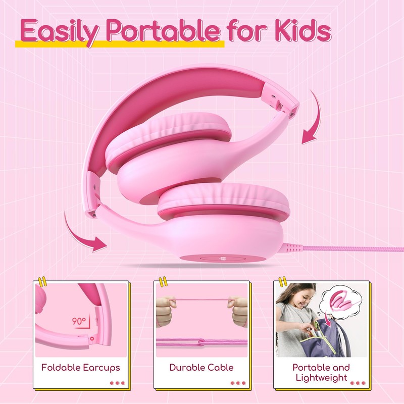 - Comfy Fit & Foldable Design: The ultra-soft ear caps combined with adjustable sliders allow getting the perfect and comfortable fit for your head shape. And the wired headphones' foldable design makes it easy to carry or store, perfect for traveling or school. Accompany your child anytime, anywhere.