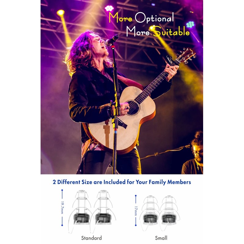 - 2 different sized earplugs are ready for you: comes with 2 pairs of different sized earplugs (standard and small). Whether your ear is large or small, there is always an option that suits you.