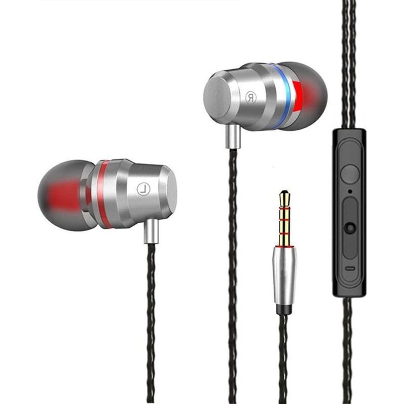 Earphones, In-Ear Headphones Earphones with 3.5mm Hi-Res Extra Bass, Noise Isolating, Wired Earbuds with Microphone and Volume Control, Compatible With all Smartphones Tablets Laptops. (Silver)