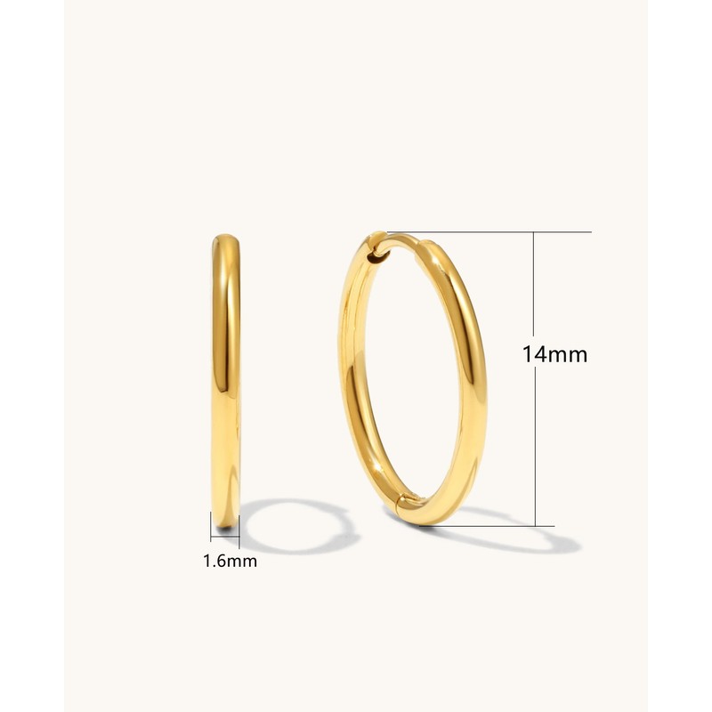 - High-quality material: gold-plated polished stainless steel; size: 14 mm; width: 1.6 mm
