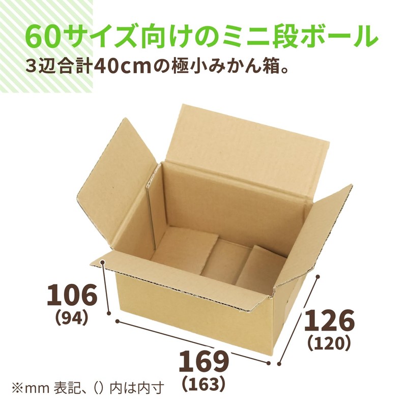 - (Mini Cardboard for 60 Sizes) A small cardboard box with a total of 15.7 inches (40 cm) on the bottom of the board A6. Fits Delivery Size 60. A compact mini cardboard box with a smaller size of 60