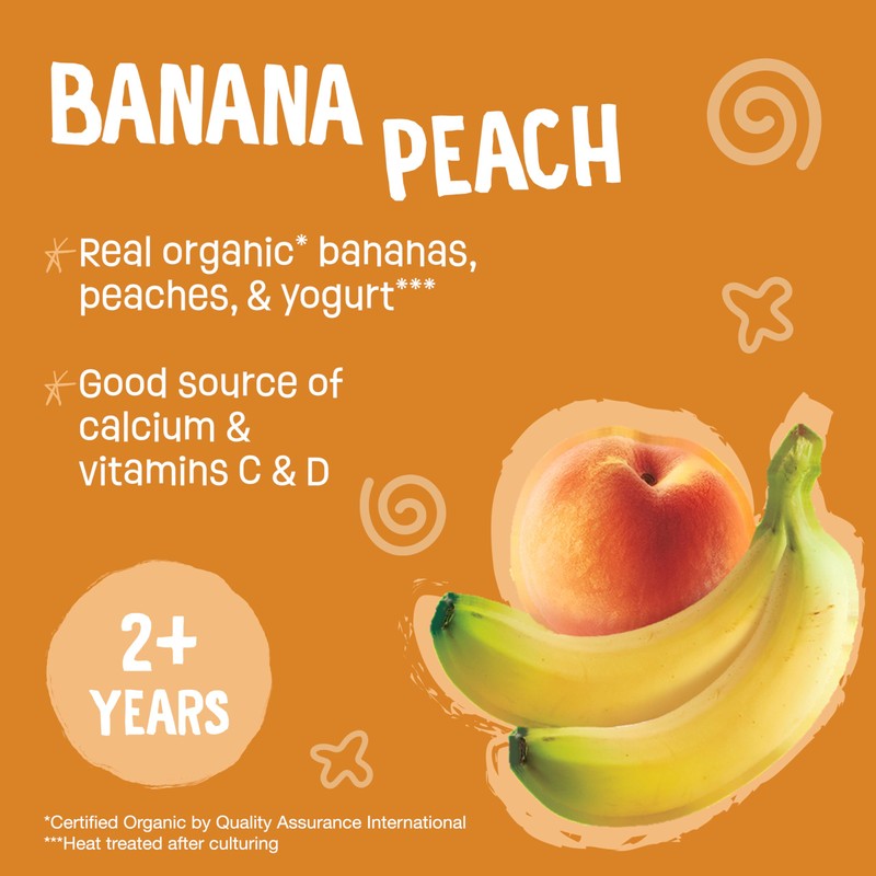 Earth's Best Organic Yogurt Smoothie Pouches, 24+ Months, Fruit Yogurt Smoothie for Toddlers 24 Months and Up, Banana Peach, 4.2 Ounce Resealable Pouch (Pack of 12)