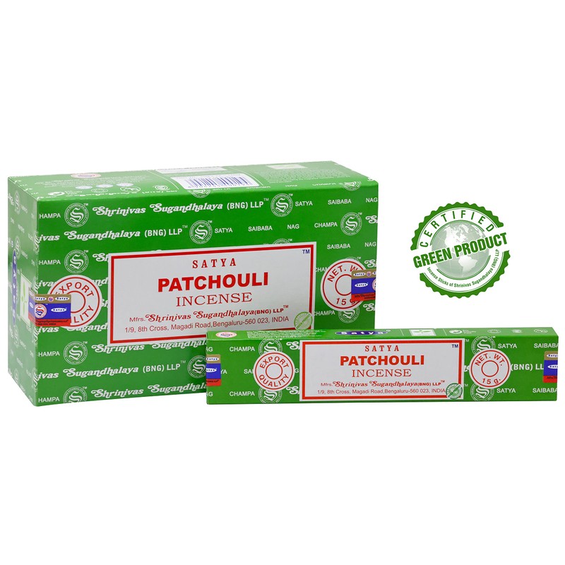 EARTH Satya Patchouli Incense Sticks 15 GMS (Pack of 12) (Green Certified) Indian Perfumed Hand Rolled Agarbatti Perfect for Worship,Relaxation, Medication.
